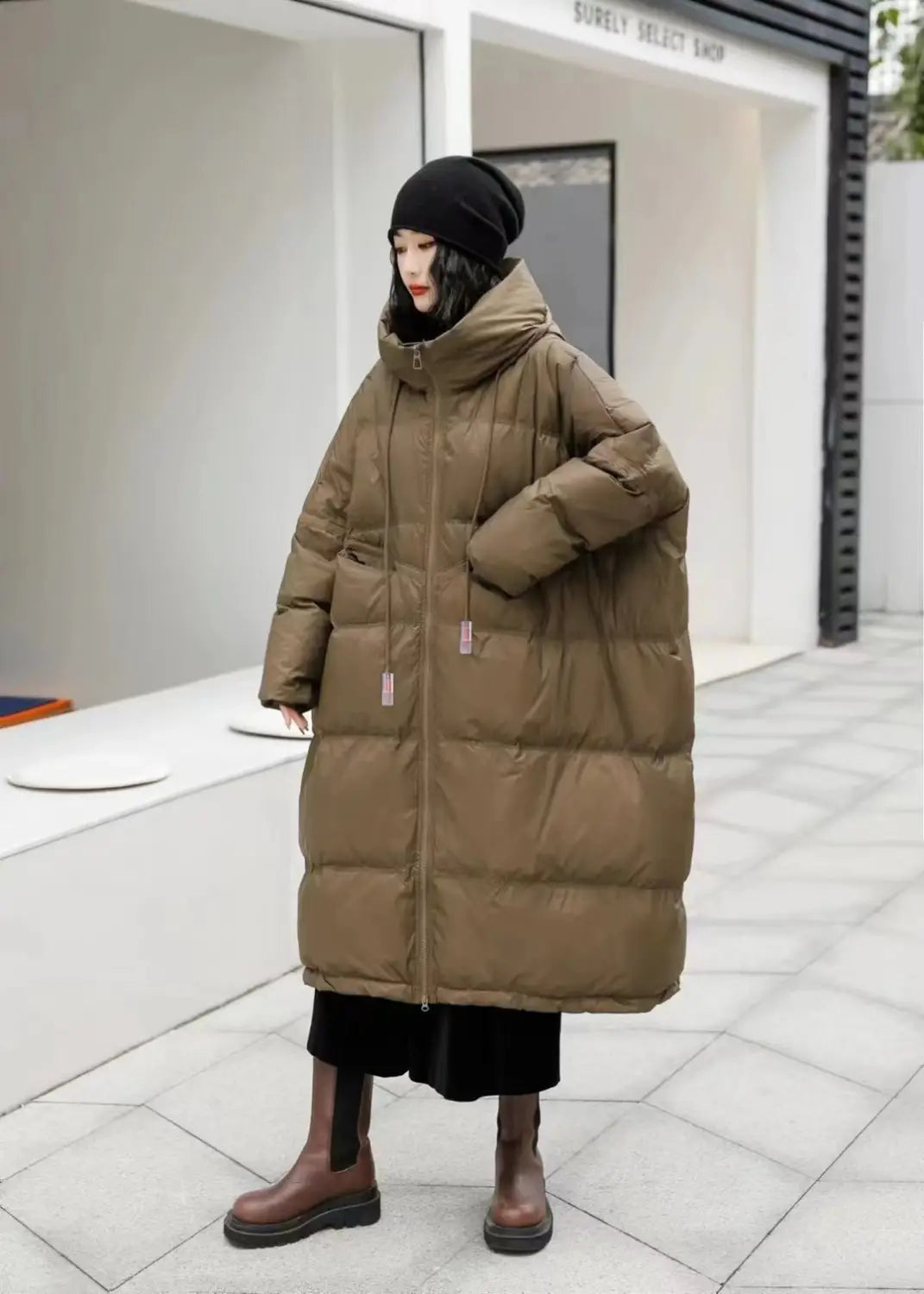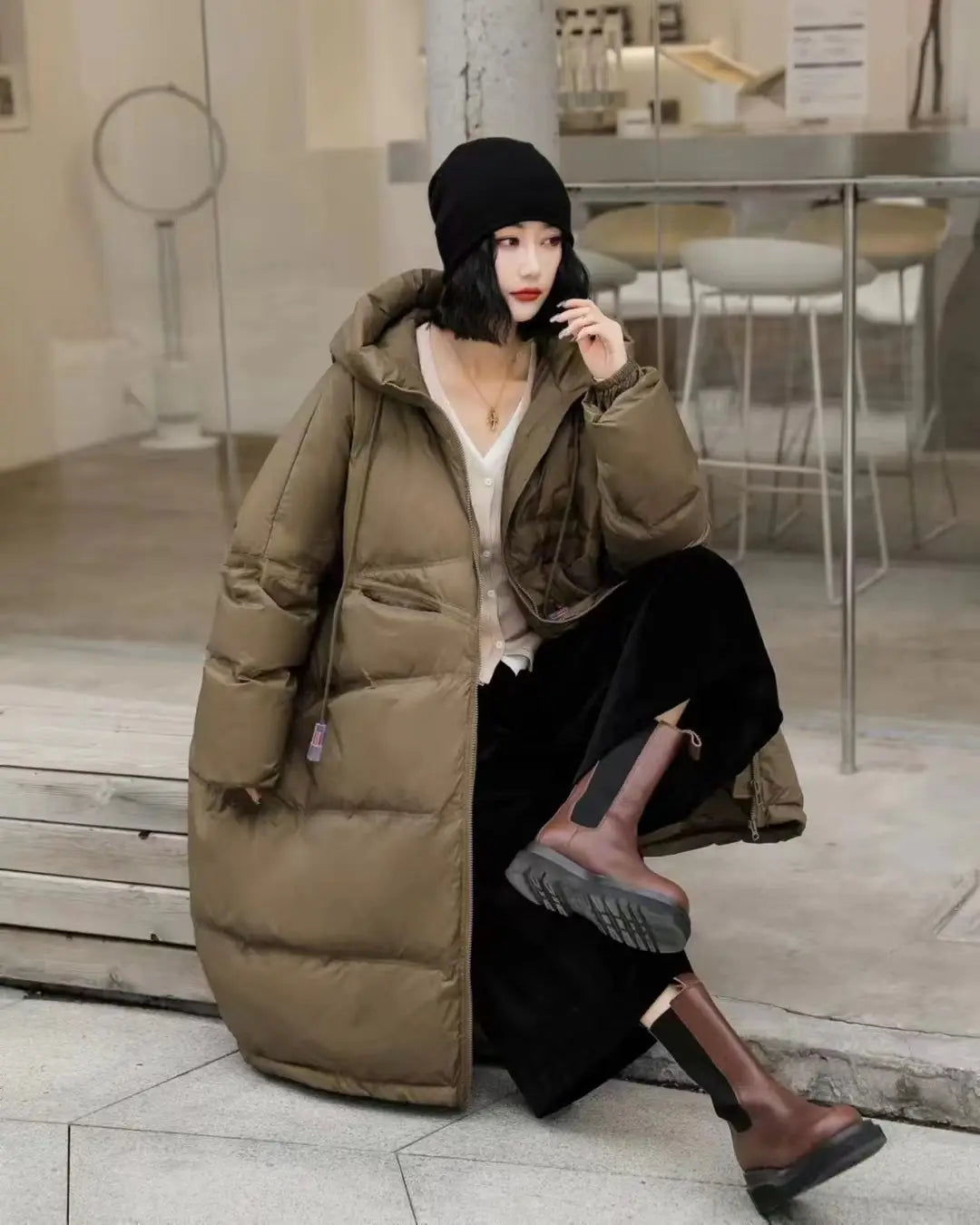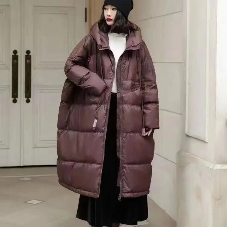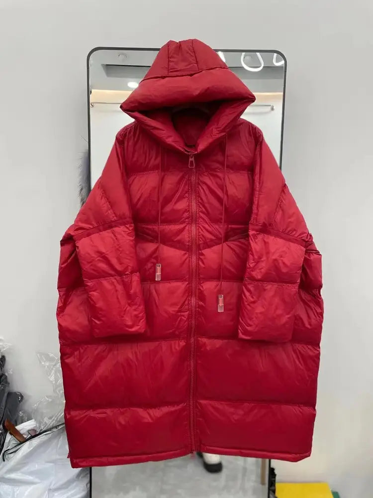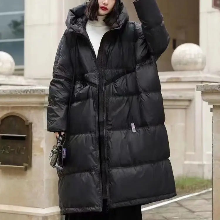 Veste mi-longue en duvet de canard blanc pour femme, chaude et épaisse, à capuche, pour l'automne et l'hiver