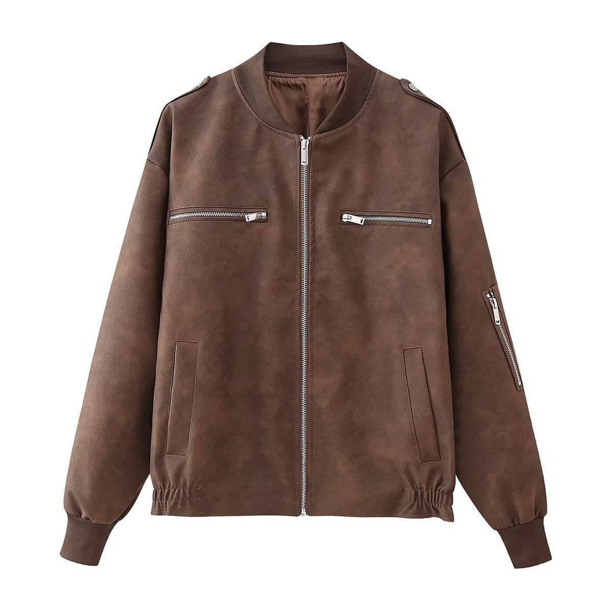 Veste en cuir synthétique décontractée de style urbain européen et américain