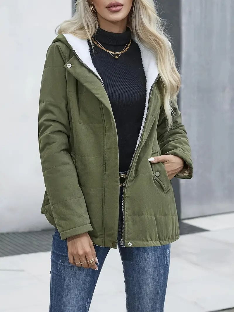 Manteau en coton à manches longues et capuche doublé polaire style preppy