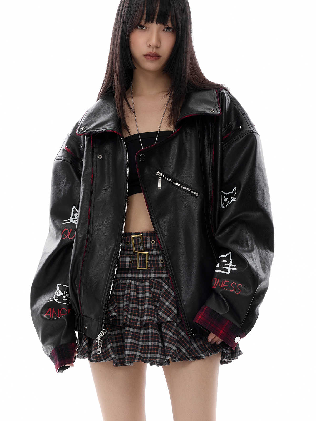 Veste de moto réversible en cuir Pu Shuai Vibe