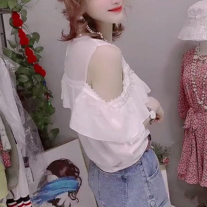 Haut à épaules dénudées pour femme, style occidental, petite chemise, tempérament, manches mi-longues